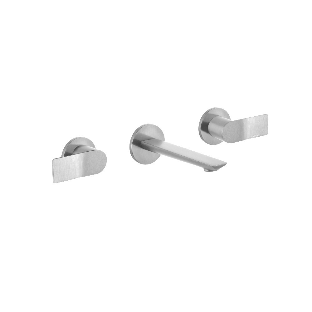 Внешняя часть смесителя для раковины на три отверстия настенного крепления.