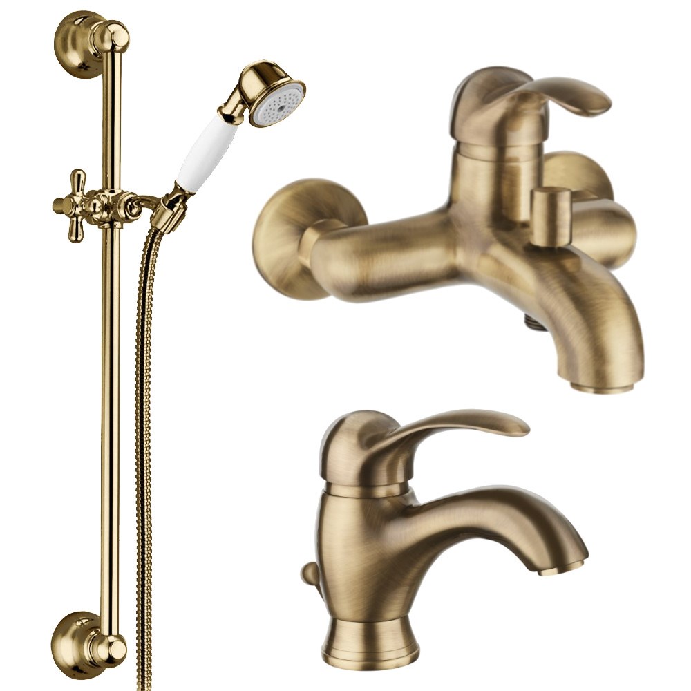 Набор смесителей в бронзовом цвете.